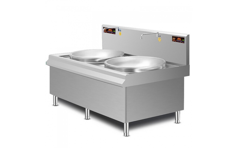 商用多功能電熱電磁爐雙頭凹面大功率學校工廠鹵肉熬湯食堂大鍋灶雙頭雙倍火力雙不銹鋼凹面大鍋電磁灶