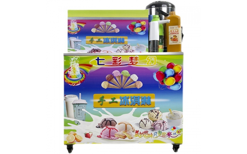 網(wǎng)紅彩虹手工七彩冰淇淋粉擺攤保溫箱冰激凌商用小推車冒煙冷飲機